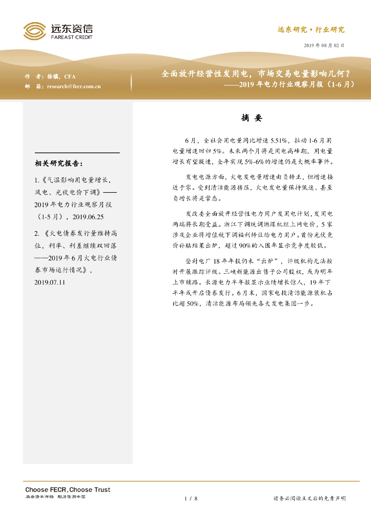 远东资信:全面放开经营性发用电,市场交易电量影响几何?——2019年电力行业观察月报(1-6月).pdf