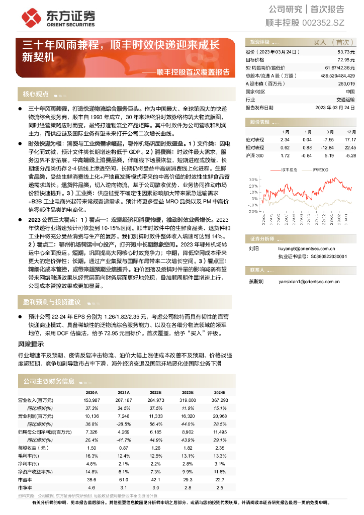 东方证券:顺丰控股首次覆盖报告:三十年风雨兼程,顺丰时效快递迎来成长新契机.pdf