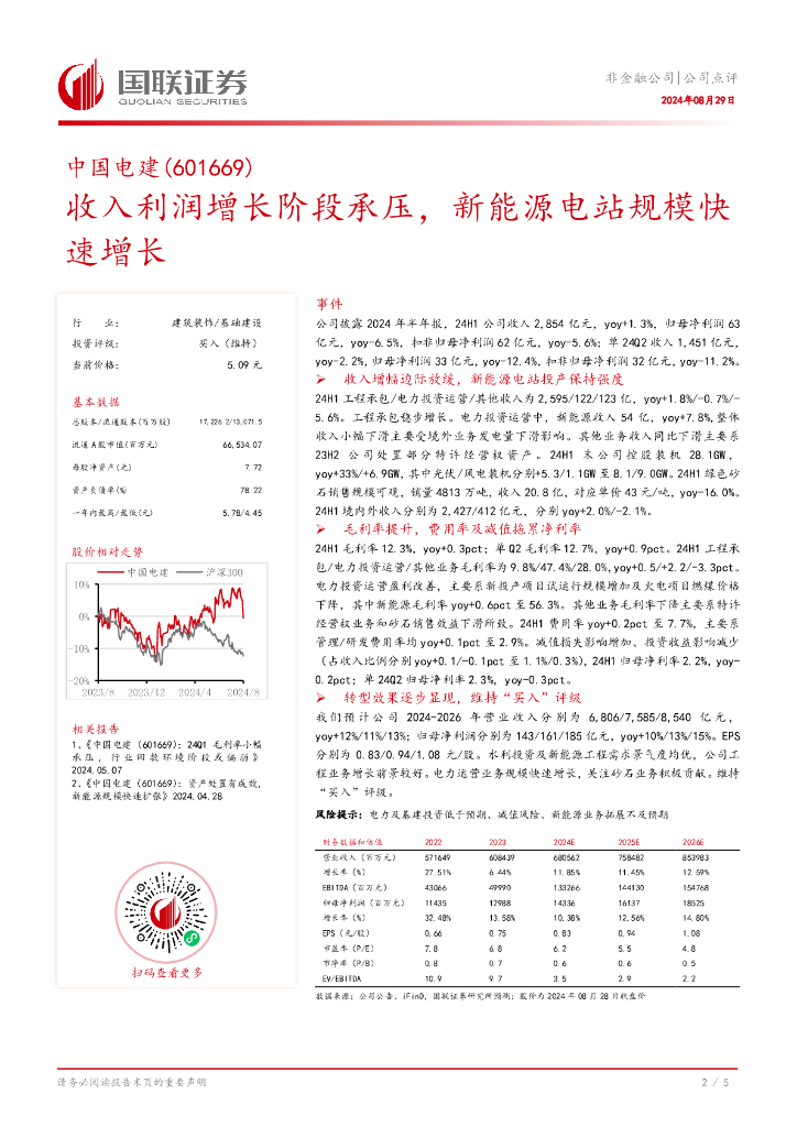 国联证券:中国电建(601669)-收入利润增长阶段承压,新能源电站规模快速增长.pdf