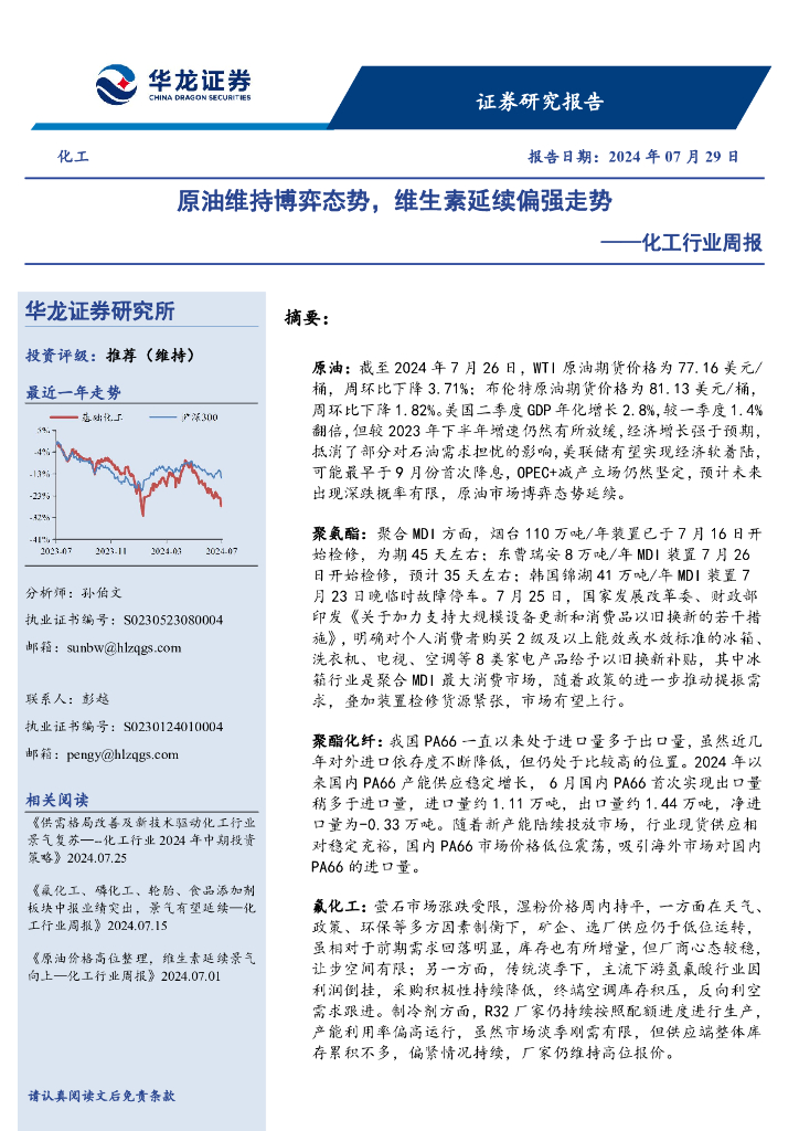 华龙证券:化工行业周报:原油维持博弈态势,维生素延续偏强走势.pdf