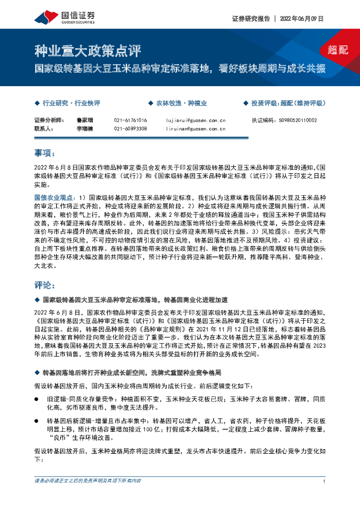 国信证券:种业重大政策点评:国家级转基因大豆玉米品种审定标准落地,看好板块周期与成长共振.pdf