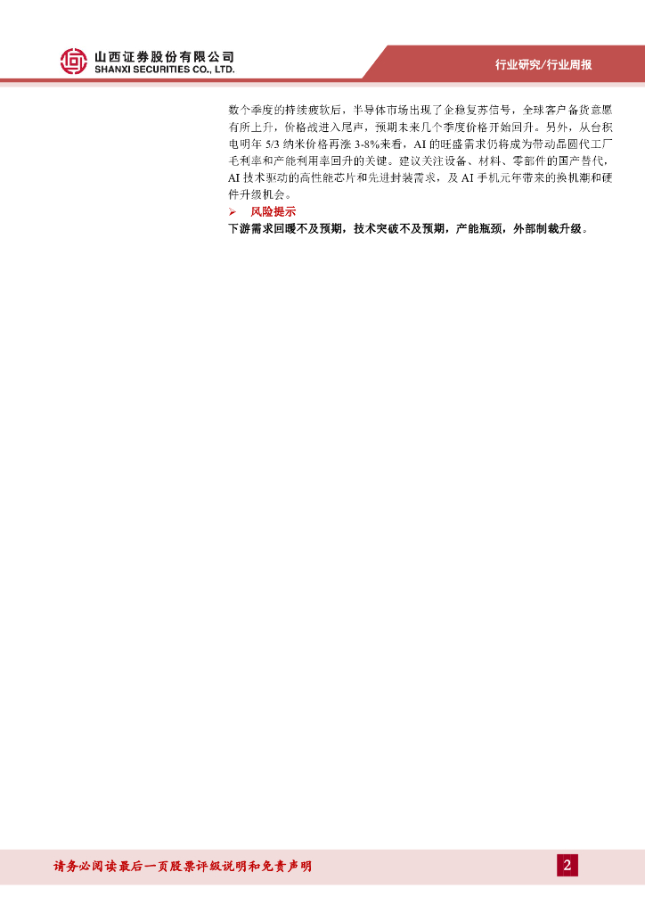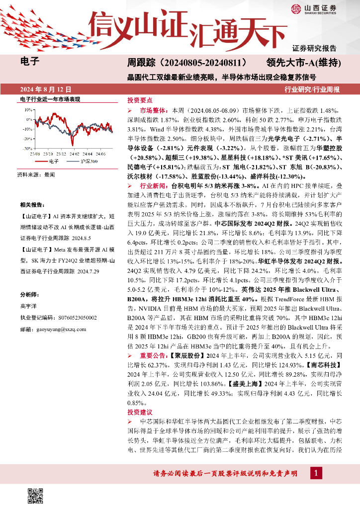 山西证券:电子周跟踪:晶圆代工双雄最新业绩亮眼,半导体市场出现企稳复苏信号.pdf