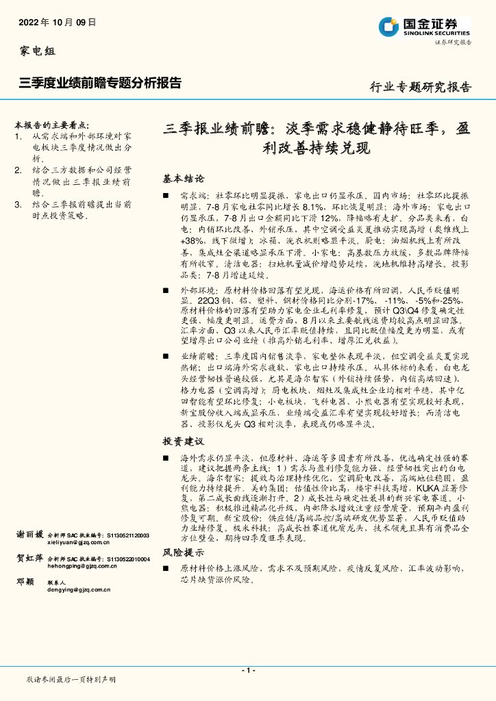 国金证券:家电三季报业绩前瞻:淡季需求稳健静待旺季,盈利改善持续兑现.pdf