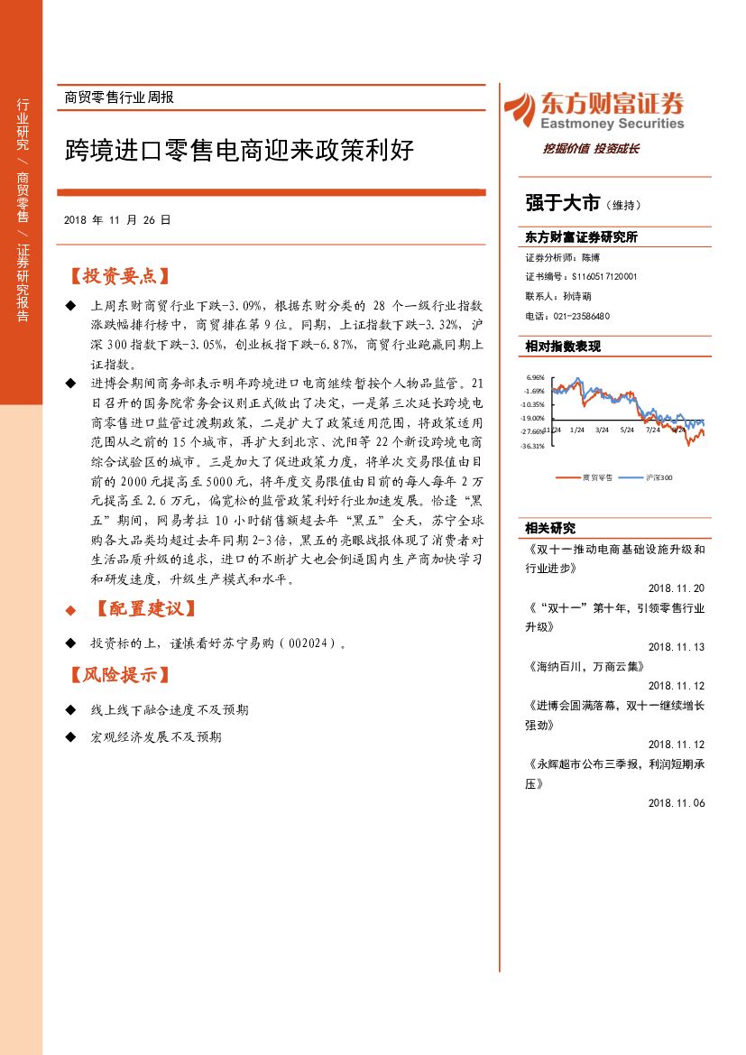 东方财富证券:商贸零售行业周报:跨境进口零售电商迎来政策利好.pdf