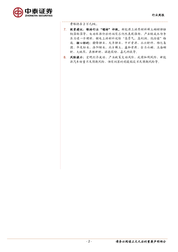 中泰证券:有色金属行业周报:电动车产销高景气,锂价延续上行.pdf