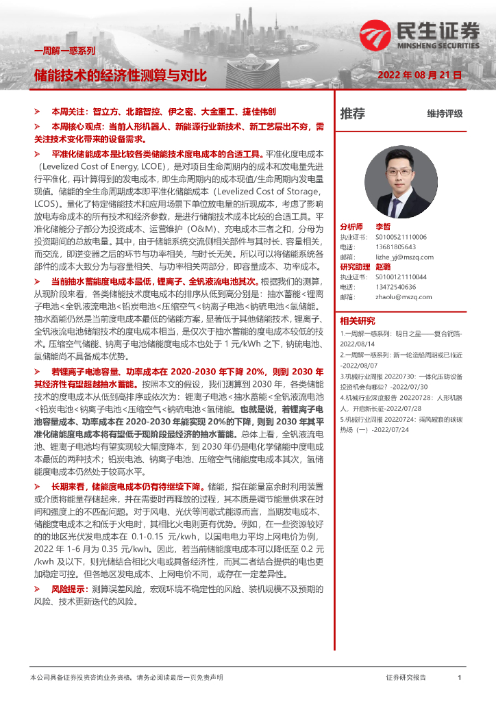 民生证券:机械:一周解一惑系列-储能技术的经济性测算与对比.pdf