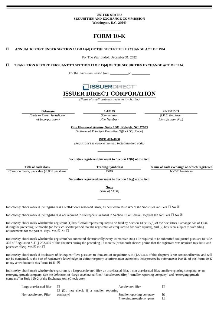 Issuer Direct Corporation(ISDR)2022财年年度报告(英文版).pdf