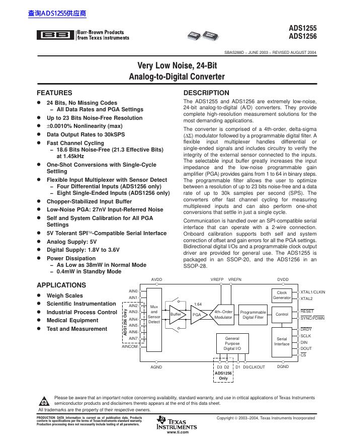 TEXAS INSTRUMENTS ADS1255 ADS1256 数据手册.pdf