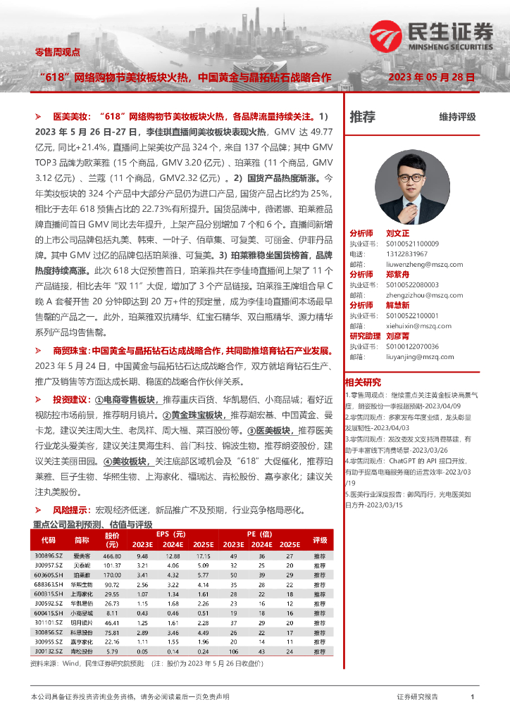民生证券:零售周观点:“618”网络购物节美妆板块火热,中国黄金与晶拓钻石战略合作.pdf