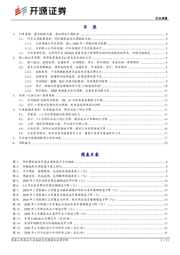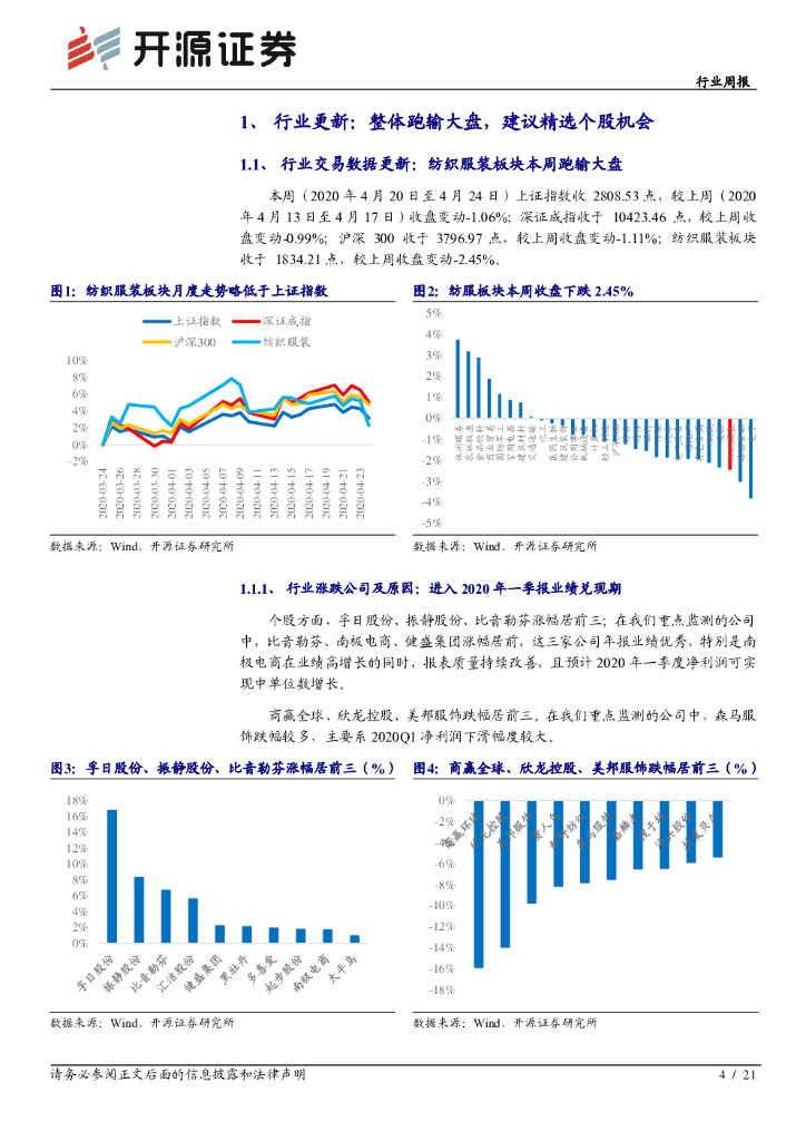 开源证券:纺织服装行业周报:无纺布行业2020Q1业绩大幅增长,继续推荐电商标的、运动服饰龙头及疫情受益标的.pdf