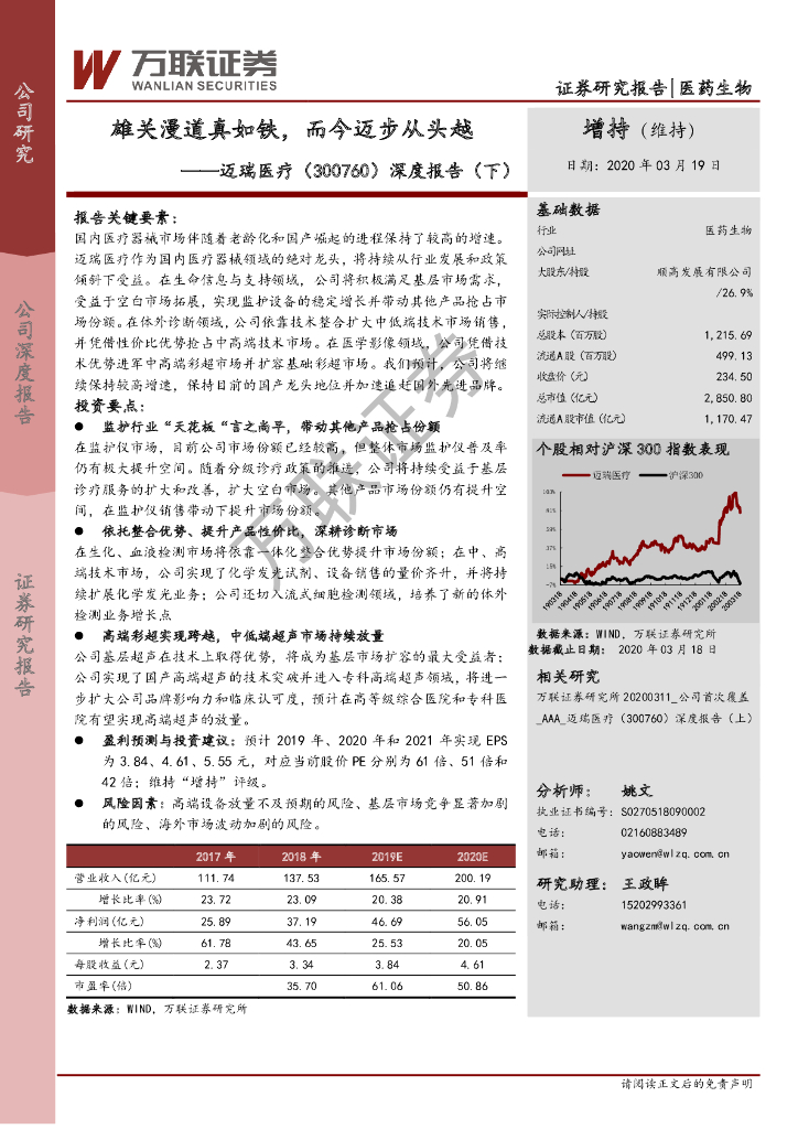 万联证券:迈瑞医疗(300760)-深度报告(下):雄关漫道真如铁,而今迈步从头越.pdf
