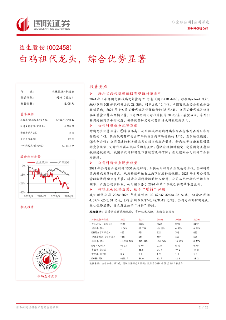 国联证券:益生股份(002458)-白鸡祖代龙头,综合优势显著.pdf