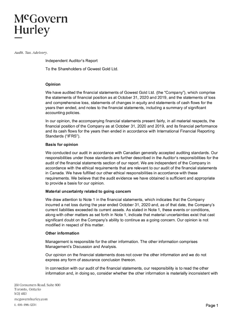 Gowest Gold Ltd.(GWA)2020财年年度报告(英文版).pdf