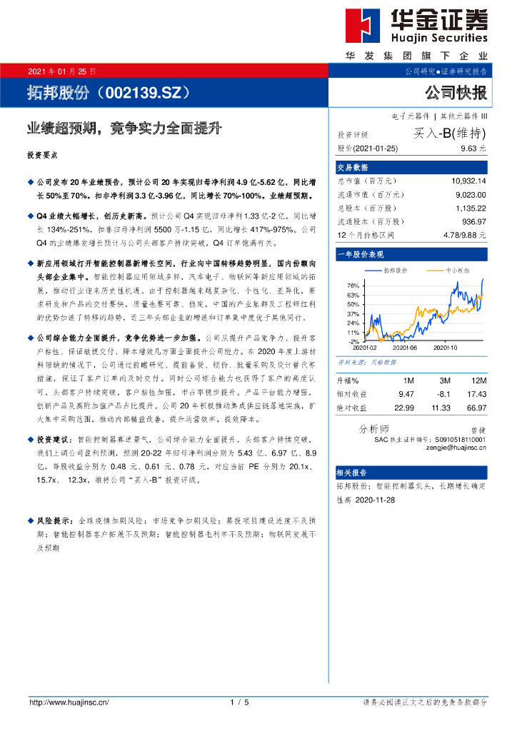 华金证券:拓邦股份(002139)-业绩超预期,竞争实力全面提升.pdf