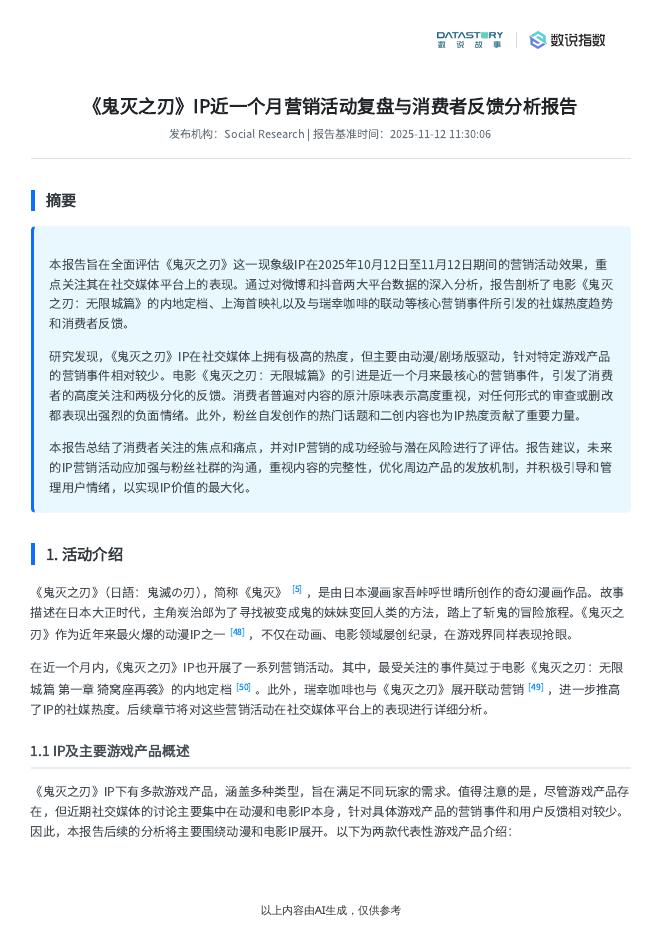 数说故事:2025年鬼灭之刃游戏近期营销事件及热度反馈分析报告.pdf