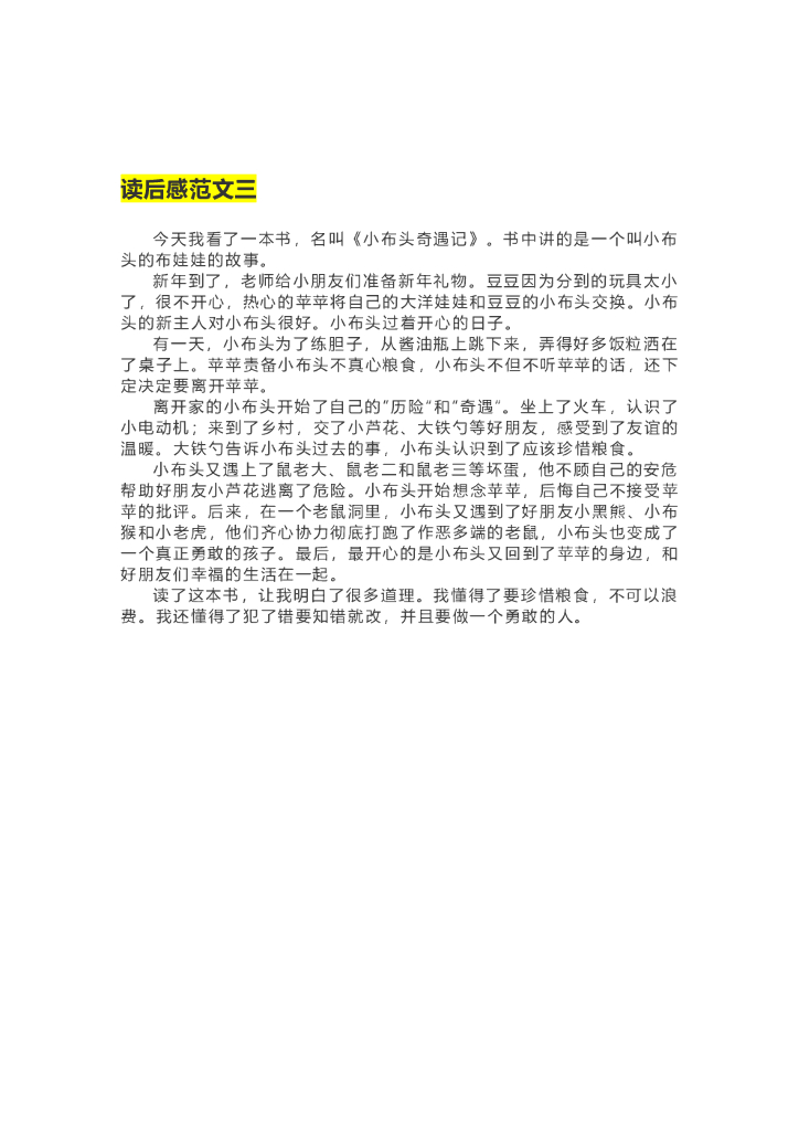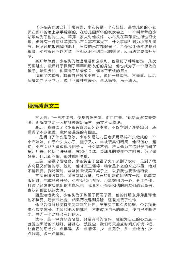 31《小布头奇遇记》精彩片段+读后感.doc