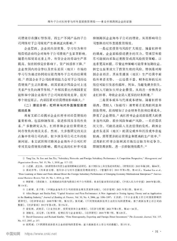 海外子公司杠杆率与对外直接投资绩效——来自中国跨国企业的证据.pdf