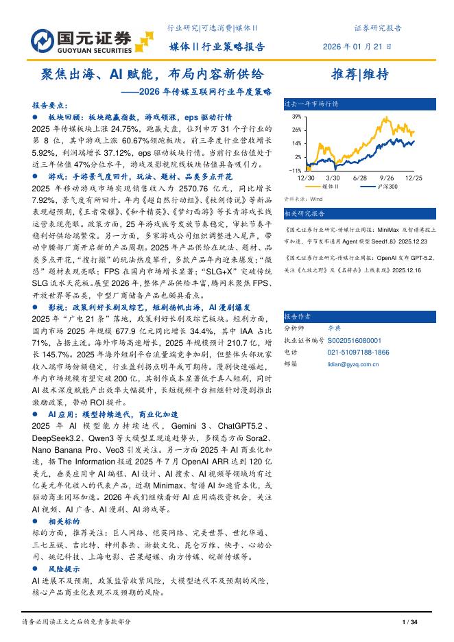国元证券:2026年传媒互联网行业年度策略:聚焦出海、AI赋能,布局内容新供给.pdf