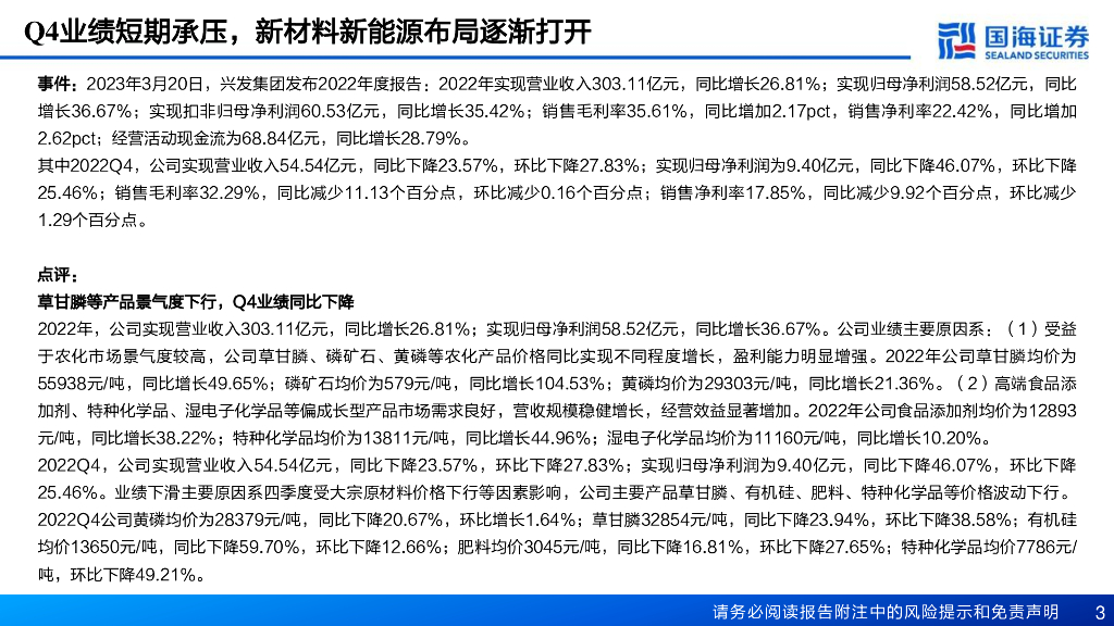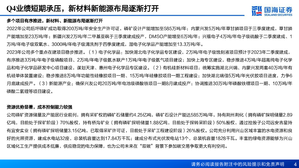 国海证券:兴发集团(600141)-2022年报点评:Q4业绩短期承压,新材料新能源布局逐渐打开.pdf