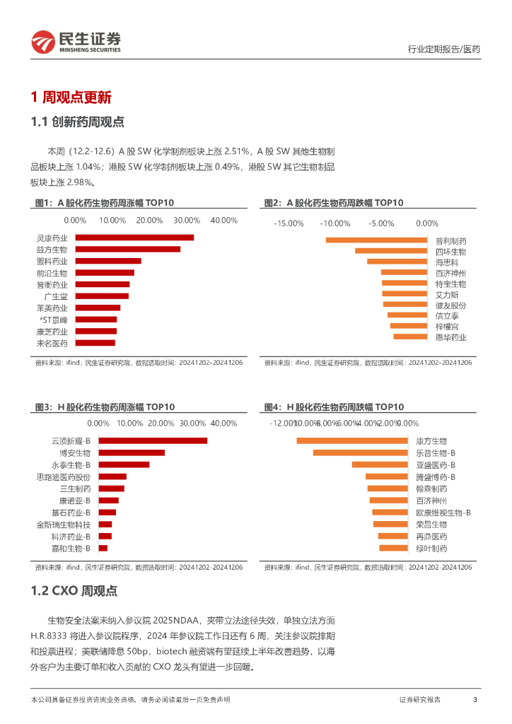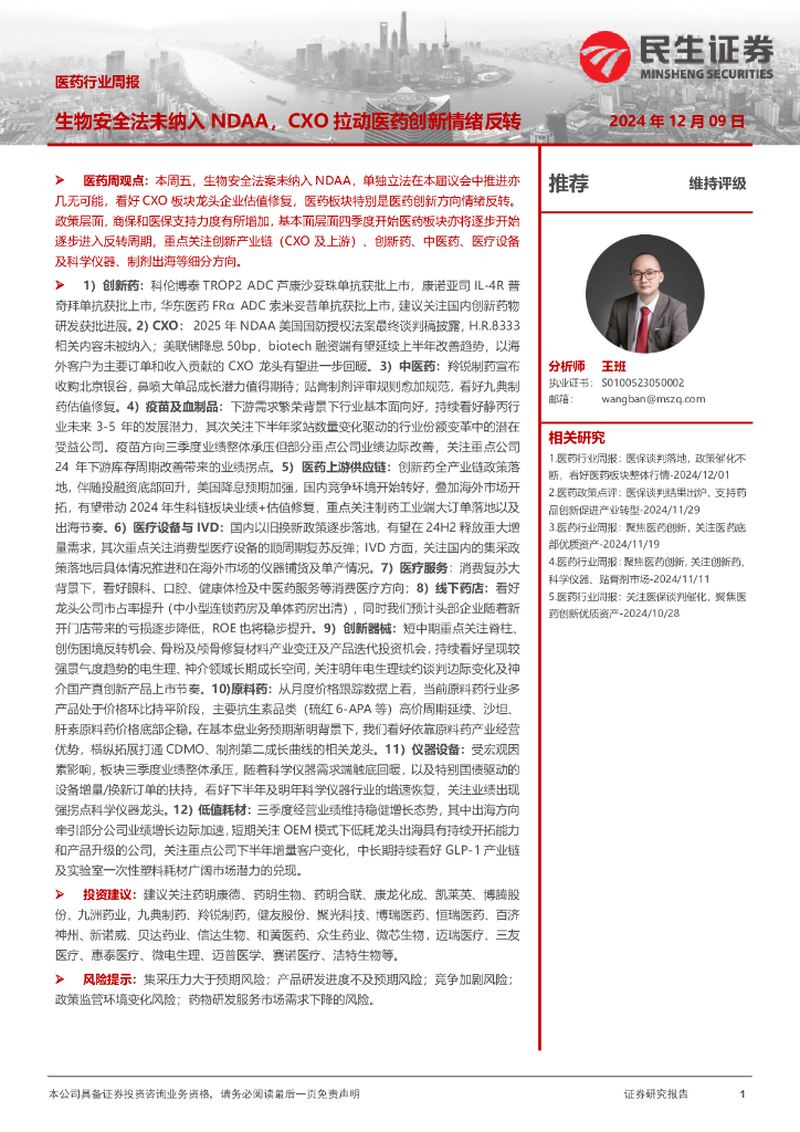 民生证券:医药行业周报:生物安全法未纳入NDAA,CXO拉动医药创新情绪反转.pdf