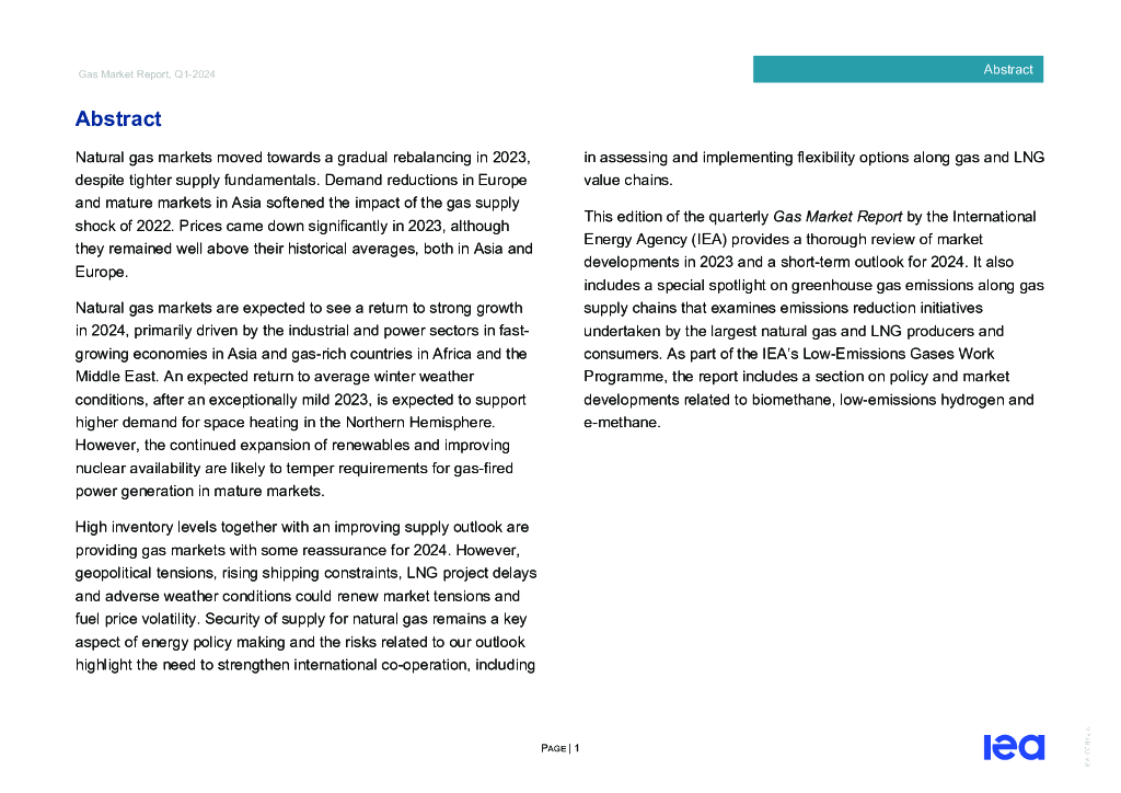 国际能源署IEA:2024年第一季度天然气市场报告(英文版).pdf