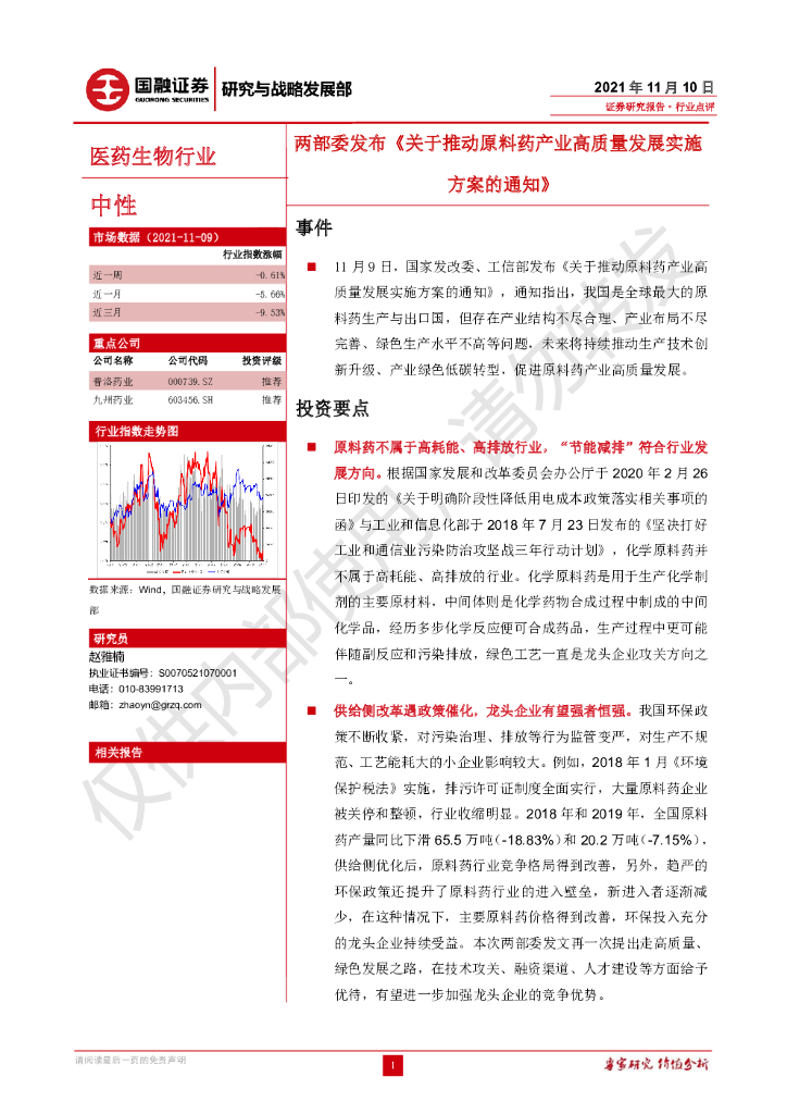 国融证券:医药生物行业:两部委发布《关于推动原料药产业高质量发展实施方案的通知》.pdf