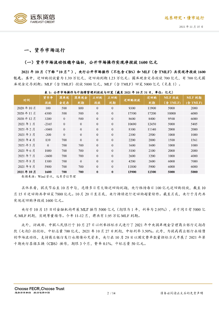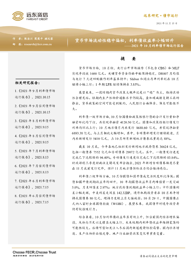 远东资信:2021年10月利率债市场运行报告:货币市场流动性稳中偏松,利率债收益率小幅回升.pdf