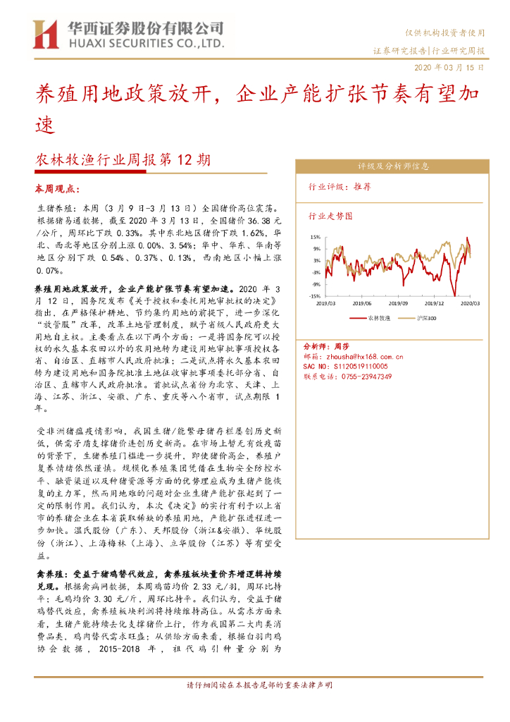 华西证券:农林牧渔行业周报第12期:养殖用地政策放开,企业产能扩张节奏有望加速.pdf