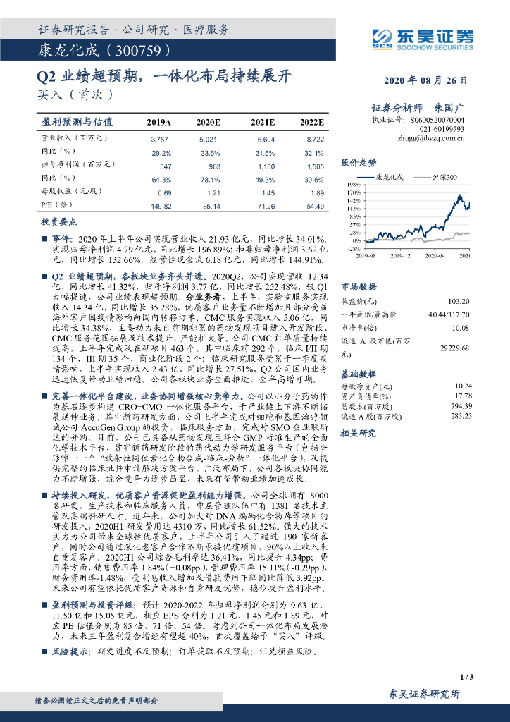 东吴证券:康龙化成(300759)-Q2业绩超预期,一体化布局持续展开.pdf