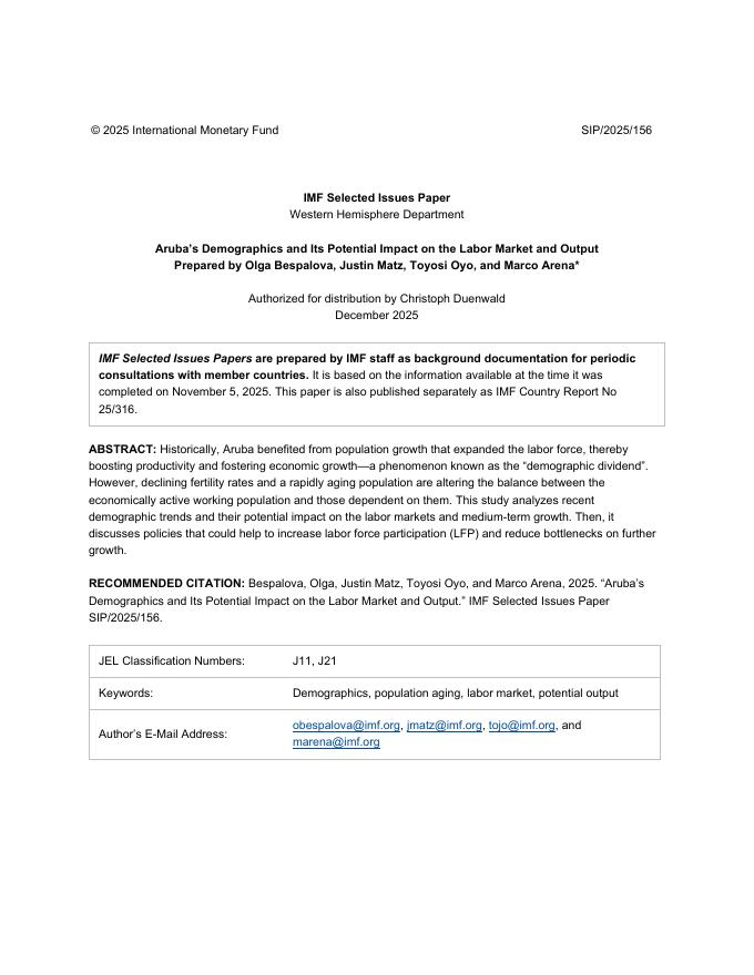 国际货币基金组织:阿鲁巴的人口统计及其对劳动力市场和产出的潜在影响(英文版).pdf