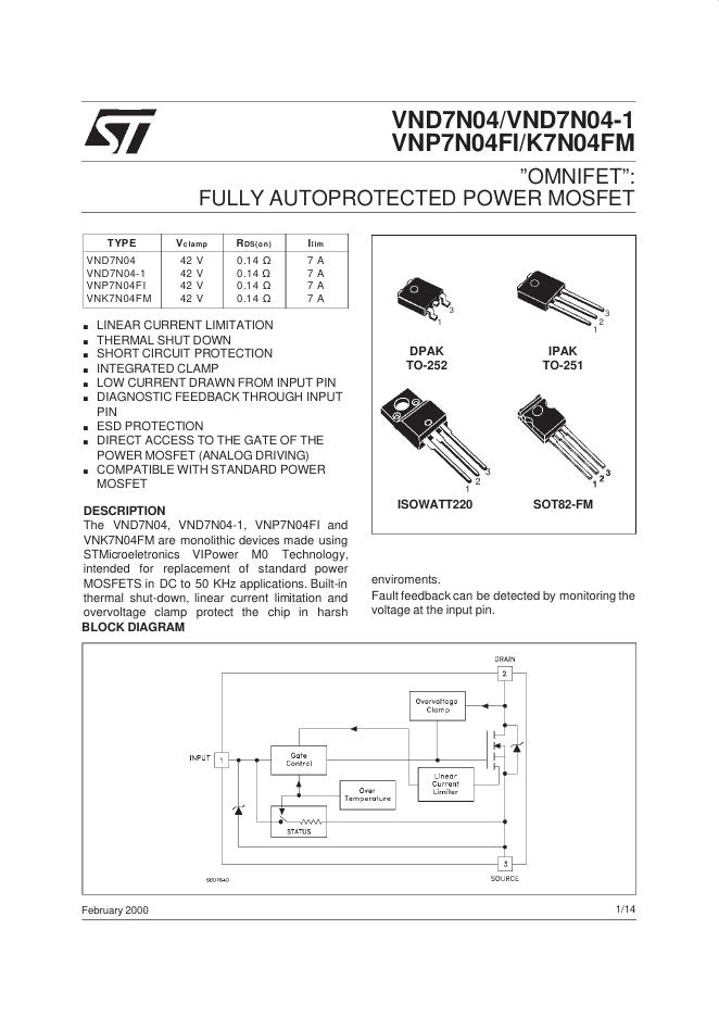 ST VND7N04/VND7N04-1/VNP7N04FI/K7N04FM 数据手册.pdf