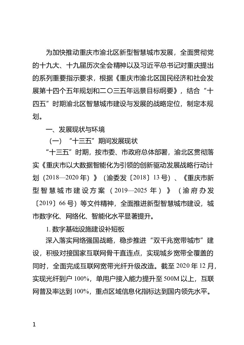 重庆市渝北区智慧城市建设“十四五”规划(2021—2025年).doc