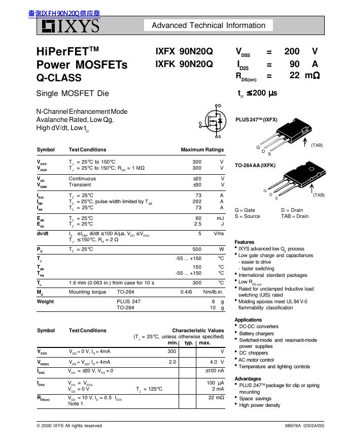 IXYS IXFX 90N20Q/IXFK 90N20Q 数据手册.pdf