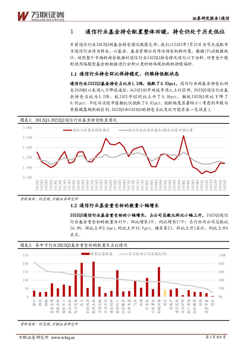 万联证券:通信行业2022Q2基金持仓综述:2022Q2通信行业持仓结构保持稳定,低配比例缩小.pdf