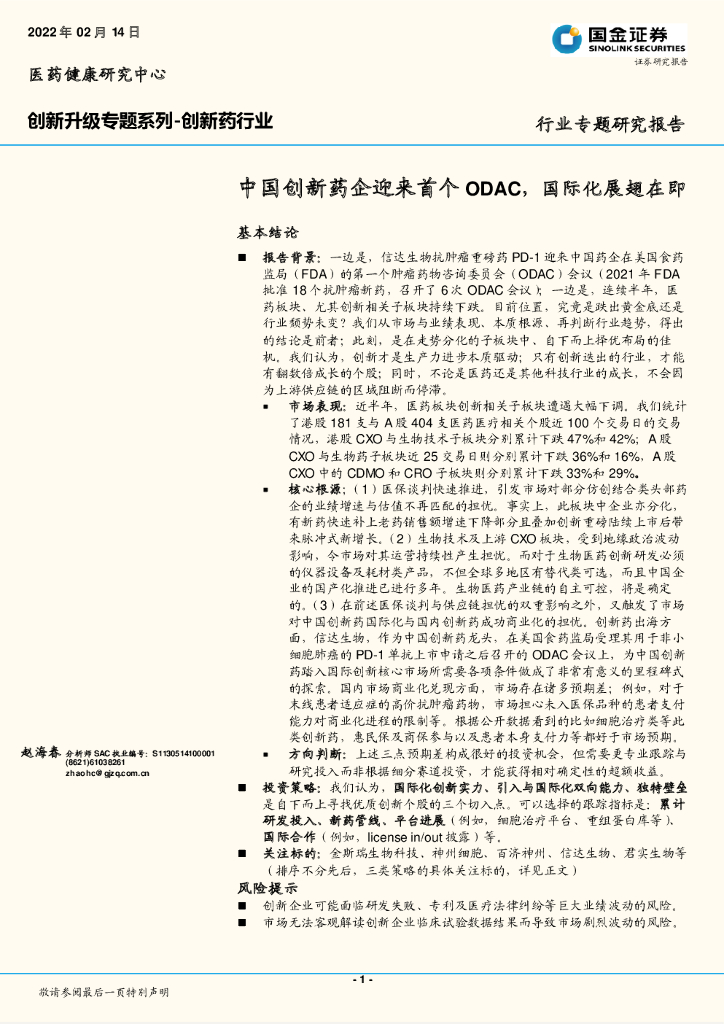 国金证券:创新升级专题系列-创新药行业:中国创新药企迎来首个ODAC,国际化展翅在即.pdf