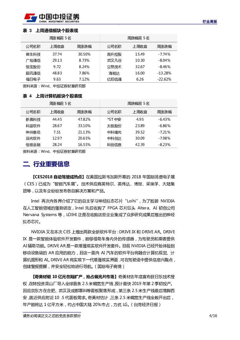 中投证券:科技行业周报:CES2018自动驾驶成热点,战略性看好汽车电子.pdf
