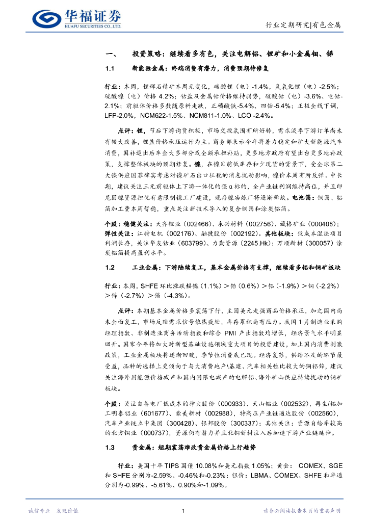 华福证券:有色金属行业周报:季节性消费底已现,继续看多有色,关注电解铝、锂矿和小金属钼、锑.pdf