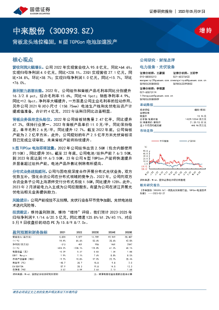 国信证券:中来股份(300393)-背板龙头地位稳固,N型TOPCon电池加速投产.pdf