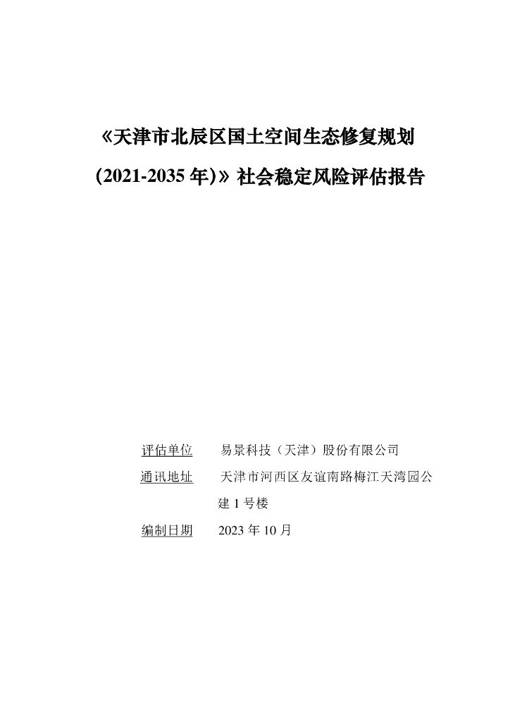 《天津市北辰区国土空间生态修复规划(2021-2035年)》社会问鼎风险评估报告.pdf