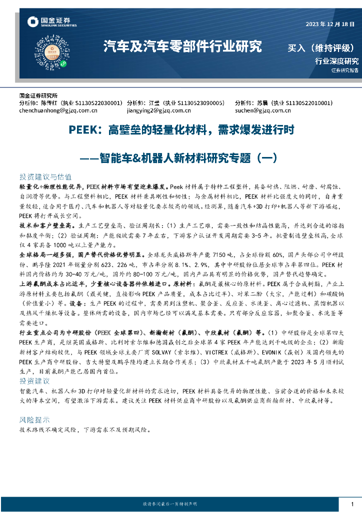 国金证券:智能车&机器人新材料研究专题(一):PEEK:高壁垒的轻量化材料,需求爆发进行时.pdf
