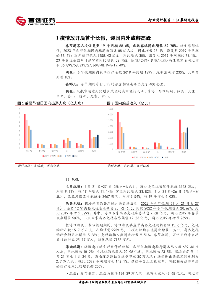 首创证券:社会服务行业简评报告:春节假期国内外旅游迎高峰,消费复苏加速.pdf