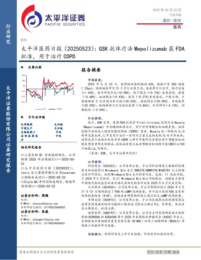太平洋证券:医药日报:GSK抗体疗法Mepolizumab获FDA批准,用于治疗COPD.pdf