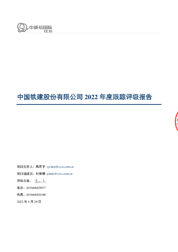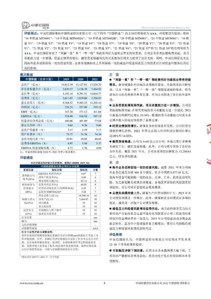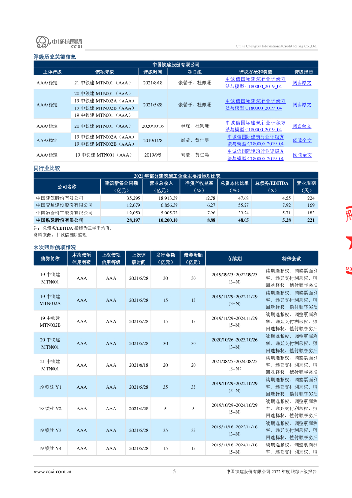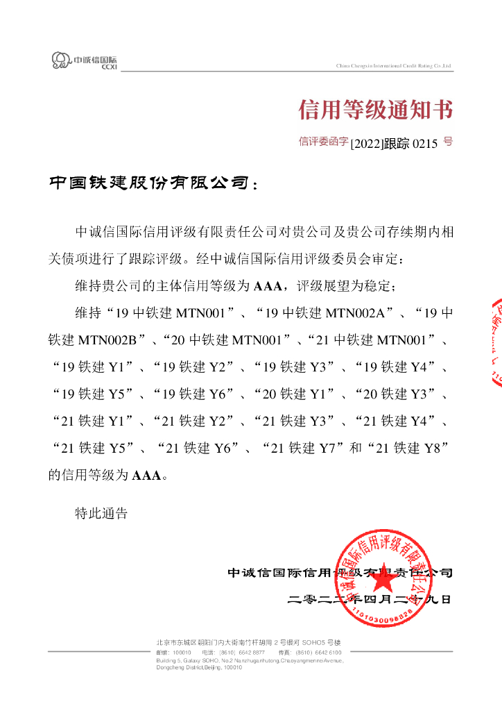 中诚信:中国铁建股份有限公司2022年度跟踪评级报告.pdf