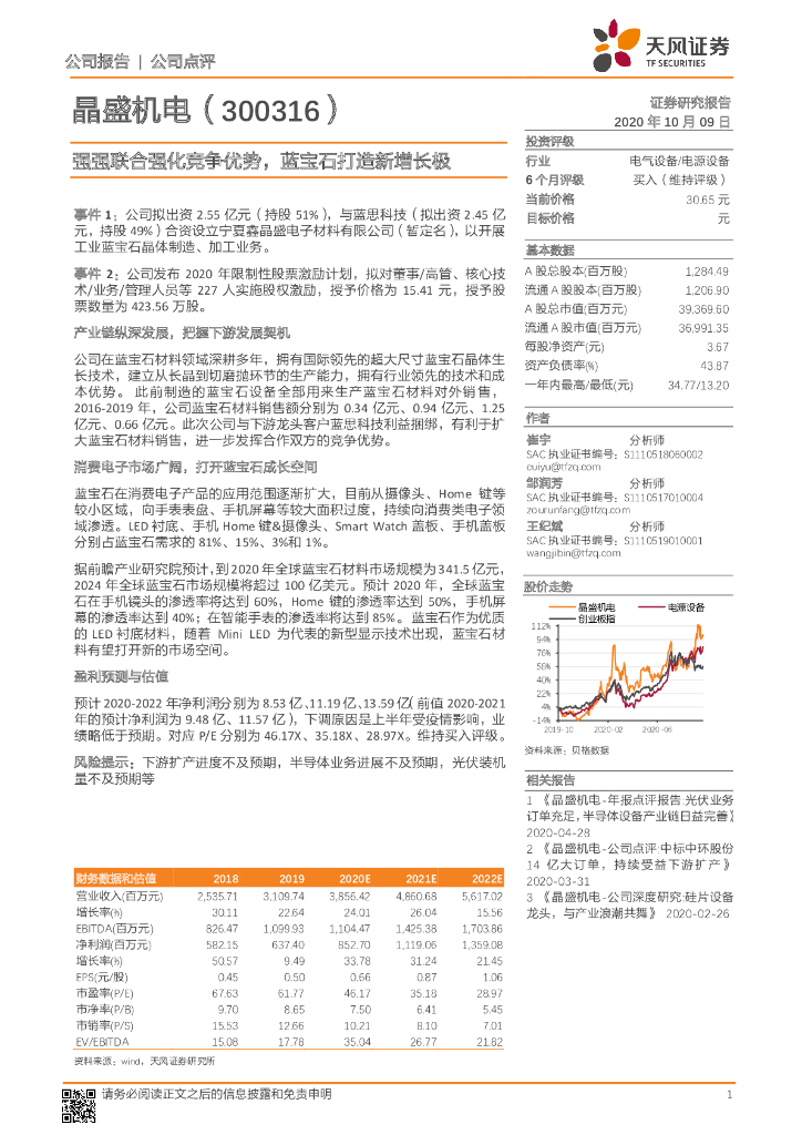 天风证券:晶盛机电(300316)-强强联合强化竞争优势,蓝宝石打造新增长极.pdf