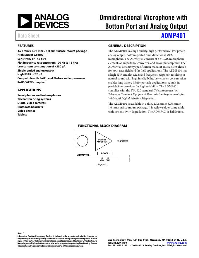 ANALOG DEVICES ADMP401 英文产品数据手册 Rev DANALOG DEVICES ADMP421 英文产品数据手册 Rev DANALOG DEVICES ADT7320 英文产品数据手册 Rev PrDANALOG DEVICES ADT7420 英文产品数据手册 Rev PrEANALOG DEVICES ADT7312 英文产品数据手册 Rev 0ANALOG DEVICES ADT7311 英文产品数据手册 Rev 0ANALOG DEVICES AD7291 英文产品数据手.pdf
