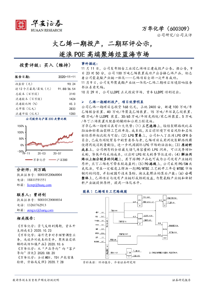 华安证券:万华化学(600309)-大乙烯一期投产,二期环评公示,逐浪POE高端聚烯烃蓝海市场.pdf