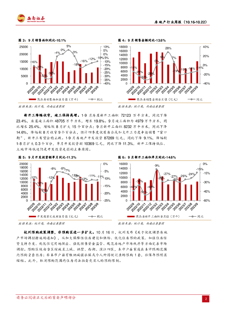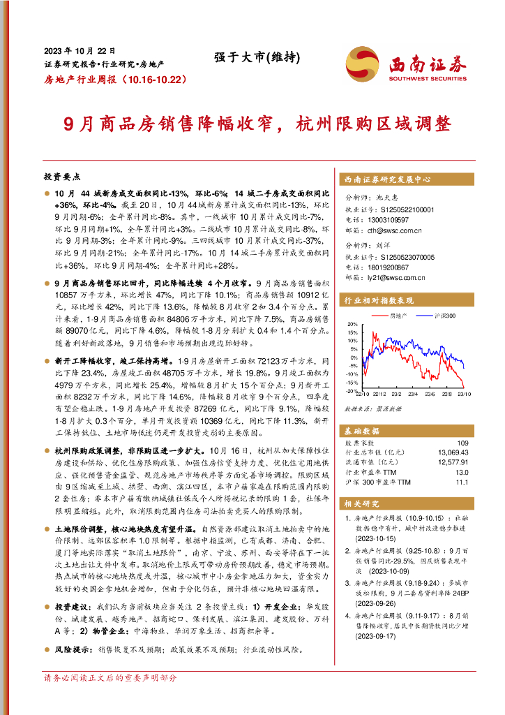 西南证券:房地产行业周报:9月商品房销售降幅收窄,杭州限购区域调整.pdf