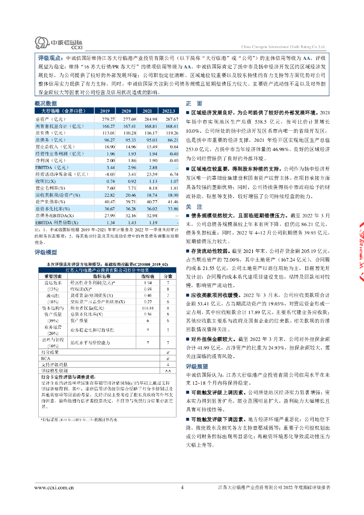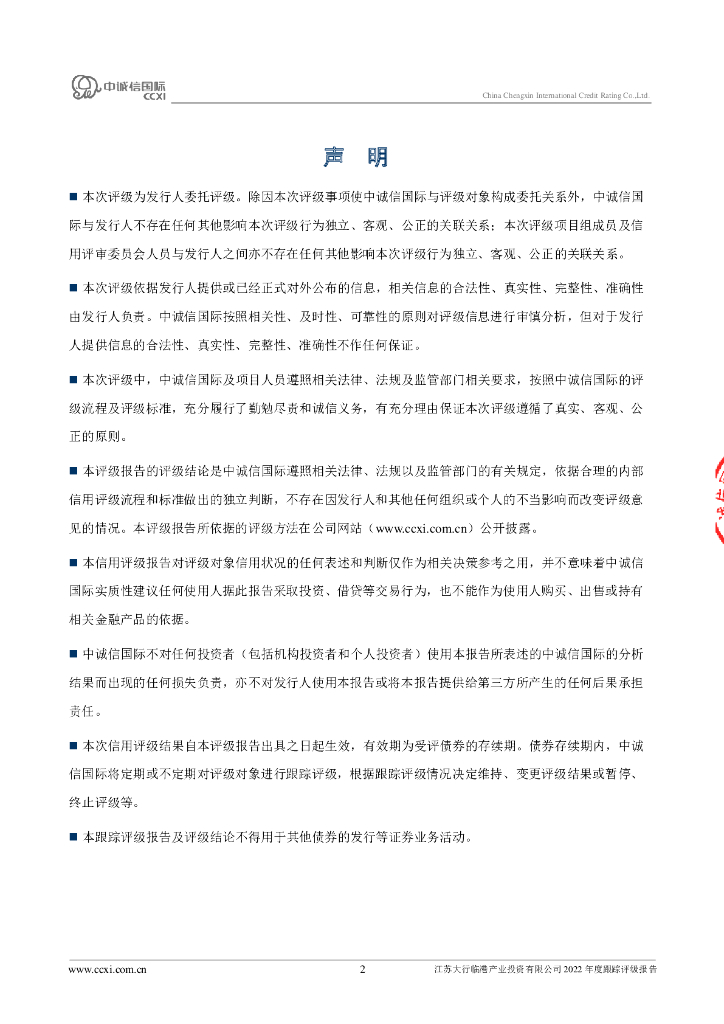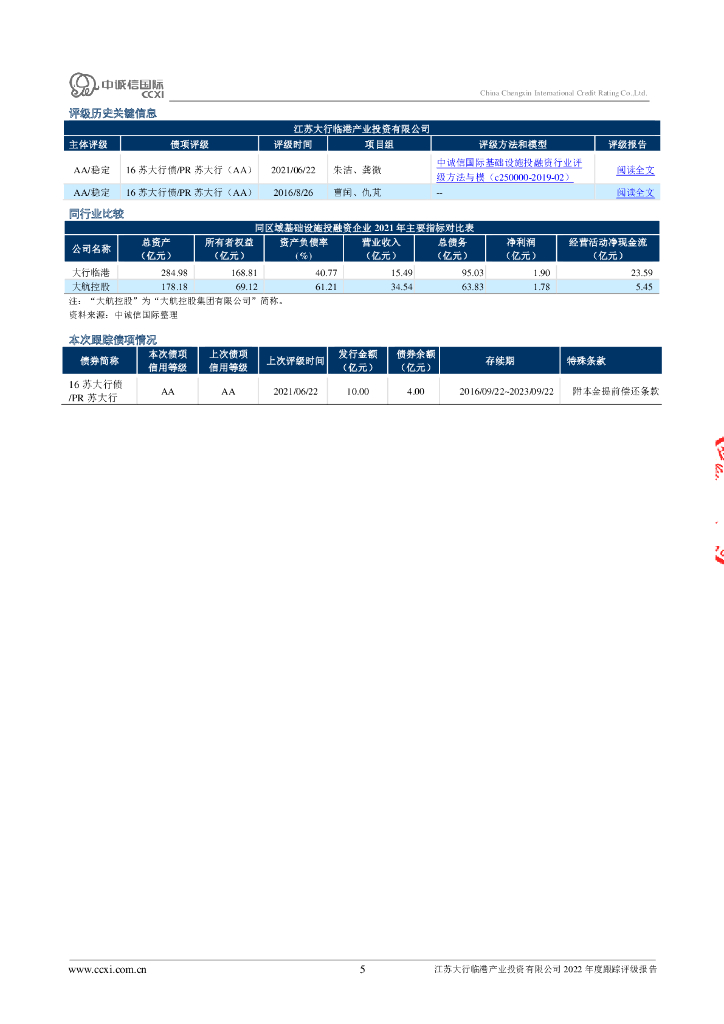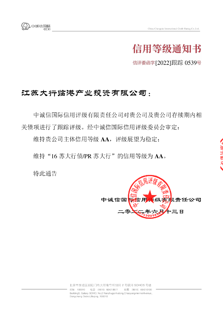 中诚信:江苏大行临港产业投资有限公司2022年度跟踪评级报告.pdf