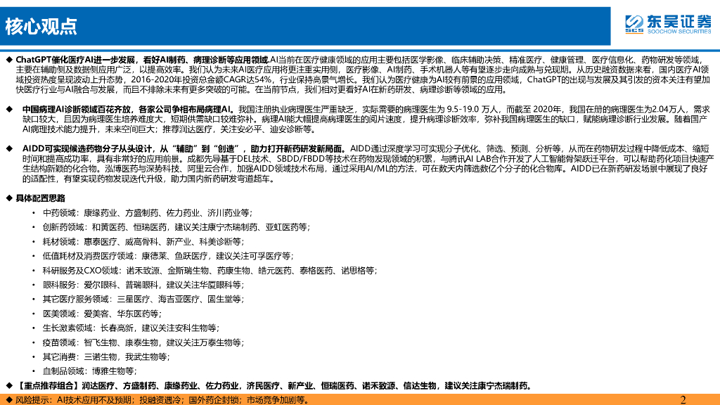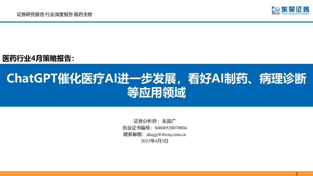 东吴证券:医药行业4月策略报告:ChatGPT催化医疗AI进一步发展,看好AI制药、病理诊断等应用领域.pdf