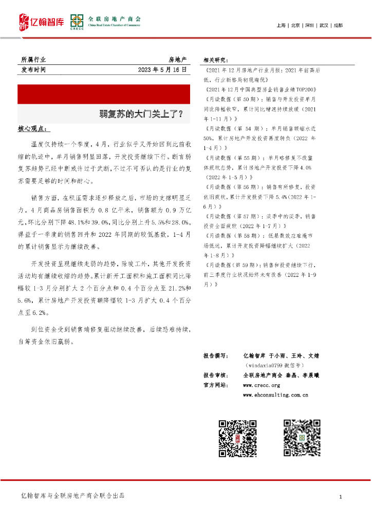 亿翰智库:房地产:弱复苏的大门关上了?.pdf